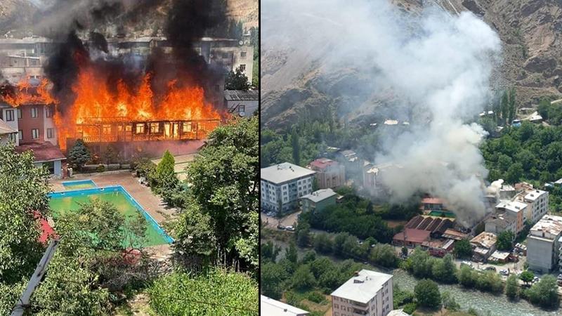 00:58Sancaktepe'de 16 yaşındaki şüphelinin iş yeri kurşunladığı anlar kameradaYusufeli ilçesi Kananet Mahallesi'ndeki 3 katlı otelin çatı kısmında, öğle saatlerinde, belirlenemeyen nedenle yangın çıktı. Alevler, rüzgarın etkisiyle tüm binayı sardı. Müşterisi olmayan otelin personeli de dışarı çıktı. İhbar üzerine bölgeye polis, itfaiye, sağlık, jandarma, Orman İşletme Müdürlüğü ekipleri ile Yusufeli'nin yeni yerleşim yeri inşaatındaki arazözler sevk edildi. Ekiplerin müdahalesiyle 3 bloktan oluşan oteldeki yangın, 2,5 saatte söndürüldü. Otelin büyük oranda kullanılamaz hale geldiği yangının çıkış nedeni araştırılıyor.