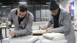 04:09Baba-oğul, tarihi Rum Yetimhanesi'nin bahçesinde kurulan atölyede taşa şekil veriyor