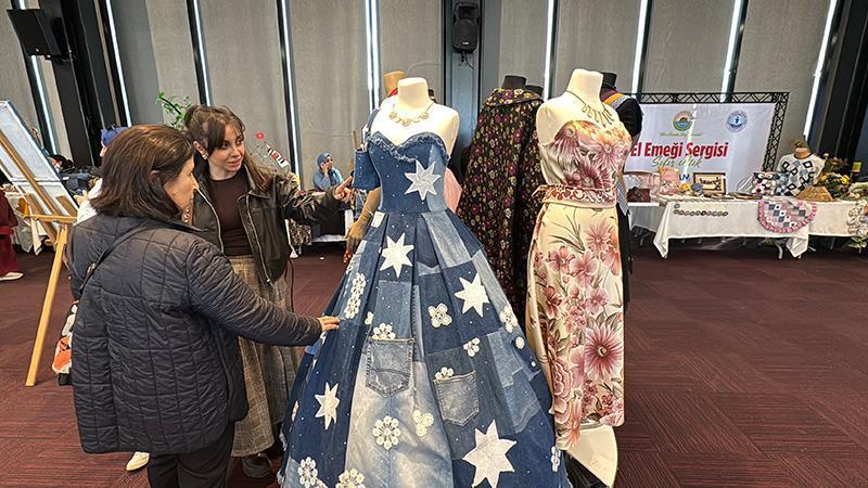 Atık kot pantolonlardan elbise, pazar arabası ve kadın çantaları üretti