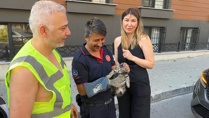 İkinci olay, Denizköşkler Mahallesi'nde meydana geldi. Evlerinden çıkan Haldun Çelik ile eşi Aynur Çelik iki farklı otomobille yolda ilerledikleri sırada, eşinin otomobilinin ön lastik bölümünde kuyruk olduğunu fark etti. Haldun Çelik, kornaya basarak önde ilerleyen eşini uyardı ardından da aracın durmasını sağladı. Sesi duyulan ancak sıkıştığı yerden bir türlü çıkarılamayan yavru kedi için 112 Acil Çağrı Merkezi'nden yardım istendi. Çelik çiftinin ihbarı üzerine olay yerine sevk edilen itfaiye ekibi, sıkışan yavru kediyi kısa sürede lastik bölümünden çıkardı. Haldun Çelik, "Arabamızı park ettiğimiz yerden aldık. Eşimin arkasındaydım. Birşeyin alttan sallandığını fark etitm kedi olduğunu fark ettim. Uzun b ir şekilde korna çalarak durdurdum. Kahraman itfiayecilerimiz bizim için hallettiler. " dedi. Aynur Çelik ise, "Çok kokuttu bizi. Neyse ki sağ salim kurtardık. Bir anda elin kolun bağlı kalıyor. Şimdi veterinere götürüp tedavisini yaptıracağız " diye konuştu. Çelik çifti yavru kediyi veterinere götüreceklerini söylerken, yardımlarından ötürü itfaiyeye teşekkür etti.