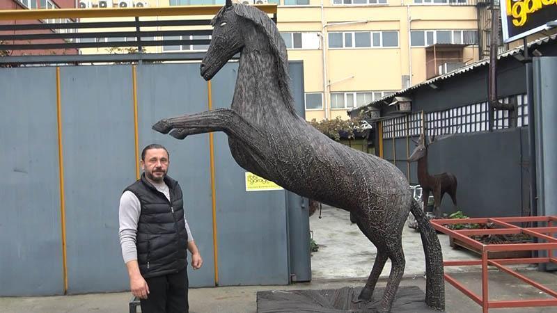 06:02Esenyurt'ta hafriyat kamyonunun çarptığı motokurye öldü; kaza kameradaDemir işleme ustası olarak 35 yıldır çalışan Hüseyin Ergen, 5 yıldır büyük bölümü otomobillerden çıkan atık malzemeleri kullanarak hayal gücüyle birbirinden farklı figürler yaptı. Firuzköy Mahallesi'ndeki atölyesinde onlarca eser ortaya çıkaran ve kendisini geri dönüşüm sanatçısı olarak tanımlayan Hüseyin Ergen, hedefinin geri dönüşüme dikkat çekmek ve atık malzemelerden neler yapılabileceğini kanıtlamak olduğunu söyledi.