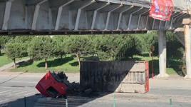 Avcılar'da iş makinesi taşıyan TIR üst geçide çarptı