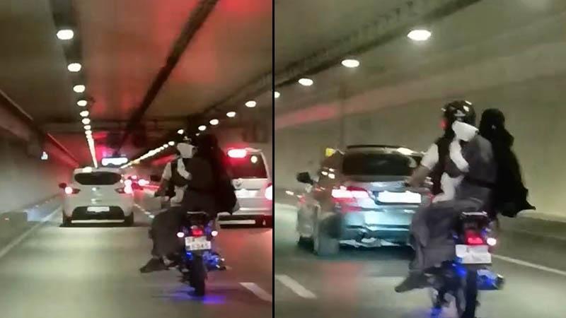 00:20ABD, Doğu Pasifik'te bir tekneye saldırı düzenledi: 4 ölüOlay, 10 Haziran Salı günü Avrasya Tüneli Yenikapı istikametinde meydana geldi. 1'İ bebek 3 kişinin motosikletteki tehlikeli yolculuğu Kadıköy'den başladı. Avrasya Tüneli'nde uzun süre sol şeritte devam eden yolculuk sırasında, sadece motosiklet sürücüsünün kaskının olması dikkat çekti. Motosiklet sürücüsüyle, arkada oturan kadın ve kucağındaki bebeğin tünelde tehlikeli şekilde ilerlediği anlar cep telefonu kamerasına yansıdı. 3 kişilik aile tünelde hem kendi hayatlarını hem de trafiği tehlikeye attıktan sonra motosikletle gözden kayboldu.