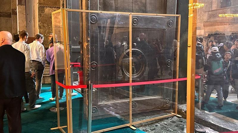 İstanbul'un simge tarihi yapılarından Ayasofya Camii'nin 'İmparatorluk Kapısı'nda geçtiğimiz yıl ziyaretçiler tarafından tahribat oluşmuş, daha sonra onarılmıştı. İmparator Kapısı'nda yeni bir tahribatın önüne geçmek için cam bölme ile önlem alındı. Vakıflar Genel Müdürlüğü İstanbul 1. Bölge Müdürlüğü Kültür Tescil ve Müzeler Şube Müdürü Osman Nak alınan önlemlerle ilgili açıklama yaptı. Nak, Ayasofya Camii'nin önemine de vurgu yaparak cami için alınan her kararın bir kurul tarafından alındığını söyledi. Nak "Hepimizin bildiği üzere Ayasofya Dünya Kültürel Mirasının en nadide eserlerinden biridir. Ayasofya bizim olduğu kadar dünyanın da gözbebeği. Hal böyle olunca hem yurt içinden hem yurtdışından gelerek Ayasofya görmek isteyen, merak eden milyonlarca ziyaretçiyi burada ağırlıyoruz. Bu da beraberinde Ayasofya'da yoğun bir ziyaretçi trafiğini oluşturuyor. Kültürel Miras konusunda da bilinçli ve hassas olmayan ziyaretçiler eserlere bilerek veya bilmeyerek dokunarak hem eserlerin aşınmasına hem de zarar görmesine sebebiyet vermektedir. Bu nedenle bu dünya mirası eserimizi gelecek nesillere de aktarabilmek amacıyla; doğal olarak korumak zorundayız. Bu amaçla da bazı koruma tedbirleri almamız gerekmektedir. Bu koruma tedbirleri de, konusunda uzman akademisyenlerden oluşan bilim kurulu, yine konusunda uzman sanat tarihçileri, mühendisler, mimarlar gibi kişilerin kararlarını ve önerileri doğrultusunda alınmaktadır" dedi.