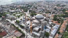 01:56Donan göletin yüzeyindeki buzu motorlu testere ile kestiAyasofya-i Kebir Camii Şerifi'nin ana kubbesinde, güçlendirme ve restorasyon çalışması devam ediyor. Oluşturulan Bilim Kurulu'nun yaptığı analiz ve incelemeler neticesinde yapının ana kubbesinde güçlendirme ihtiyacı olduğu belirlenmişti. Bu nedenle ana kubbe, tarihinin en geniş ve en kapsamlı restorasyon sürecine alındı. Restorasyon Bilim Kurulu'nun denetimi ile uygulanmaya başlandı. Ana ve yarım kubbeler depreme karşı daha dayanıklı hale getirilecek ve yapının özgün hali titizlikle korunacak. Ayasofya Camii'nin kubbesinde ve minaresinde devam eden restorasyon çalışmaları havadan görüntülendi.
