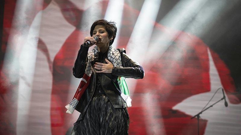 Konserinin bir bölümünde İsrail’in Gazze’ye yönelik saldırılarına tepki gösteren Aydilge, Filistin bayraklı atkı takarak, "Sadece eğlenmek ve keyiflenmek için müzik yapmıyoruz. Bazen üzüntülerimizi, acılarımızı paylaşmak, anlatamadıklarımızı anlatmak için müzik bizim şifamız oluyor. Ben 3-4 yıl önce 'Yalnızlık Masalı' adında bir şarkı yazmıştım. Bu akşam da sizlerle dünyada yapayalnız bırakılmış, ne yazık ki yalnızlığa terkedilmiş, acıları görünmeyen sevgili Filistinli kardeşlerimiz için bu şarkıyı söylemek istiyorum. Filistinli kardeşlerimize, dualarımızı ve iyi dileklerimizi hep birlikte gönderelim" dedi.