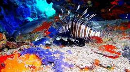 ilçesinde, su ürünleri mühendisi ve profesyonel dalgıç Nedim Kartal, 12 metre derinlikte dikenleri zehirli, istilacı bir tür olan