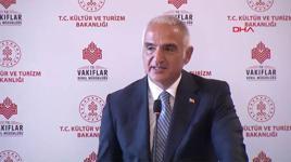 “6 Şubat depreminde Gaziantep Kalesi’nin büyük bir kısmında da ciddi yıkımlar meydana gelmiştir. Kısa süre içinde burada da çalışmalarımızı başlatarak tarihi yapının aslına uygun bir şekilde ayağa kaldırılması yönünde gereken adımları attık. Kalenin zemininde, yıkılan sur duvarlarında, burçlarda, kulelerde, kemer ve yürüme yollarında restorasyon çalışmalarını hızla sürdürerek şehrin simge yapılarından olan Gaziantep Kalesi'nin çalışmalarını kısa sürede tamamladık. Depremde hasar gören kültürel mirasımızın önemli eserlerinden bir diğeri de kayıtlarda 1718 ‘de yaptırıldığı belirtilen Zincirli Bedesten’dir. Uzun bir süre bölgenin en önemli bedestenlerinden biri olan yapının 1934’ten sonra farklı şekillerde kullanıldığı görülmektedir. Bir dönem sebze hali, daha sonra hem sebze hali hem adliye olarak kullanılan yapı, 60’ların ortalarından itibaren hem et hem de sebze hali olarak da kullanılmıştır. 2008’de Vakıflar Bölge Müdürlüğümüz tarafından yapılan restorasyon sonucunda ise bu tarihi yapı yeniden özgün fonksiyonu olan çarşı özelliğine kavuşmuştur. Ancak depremde Zincirli Bedesten’de de ciddi yapısal hasarlar meydana gelmiştir. Bakanlık olarak tarih ve kültür şehri Gaziantep’in hafızasında önemli yeri olan bu yapının da ayağa kaldırılması için hemen çalışma başlattık. Restorasyon projesi doğrultusunda zeminden çatıya, duvarlardan tüm cephelere kadar büyük bir titizlik içerisinde çalışmalar gerçekleştirip aynı zamanda tüm dükkanların asma katları, camekanları ve pencere doğramaları da yeniden yapılmıştır. Tüm bu çalışmalar neticesinde bugün içinde bulunduğumuz bu tarihi yapının güzelliği, bir kez daha gün yüzüne çıkartılmıştır. Bugün burada sadece bazı yapıların açılışını gerçekleştirmiyoruz. Aynı zamanda geçmişle hem bugünü hem de geleceği buluşturan eserlerin yeniden hayat buluşuna da şahitlik ediyoruz. Biz Kültür ve Turizm Bakanlığı olarak binaların yeniden onarılmasını sadece fiziki bir iyileştirme olarak değil aynı zamanda o yapıların inşa edildiği dönemin ruhunun bugüne taşınması, tarihi ve kültürel mirasın ihya edilmesi olarak da görüyoruz. Unutmayalım ki kültürel mirasa sahip çıkmak, aynı zamanda bir toplumun kendi kimliğine ve değerlerine de sahip çıkmasıdır. İşte bu bakış açısıyla hem ülke sınırlarımızda hem de uluslararası alanda tarihimize, medeniyetimize ait tüm eserleri bulup, yeniden ayağa kaldırmanın gayreti içinde oluyoruz."