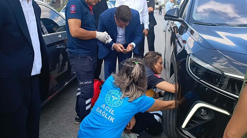Türkiye Yüzyılı Buluşmaları için Balıkesir'e gelen Adalet Bakanı Yılmaz Tunç'un konvoyunda hareket halindeki bir aracın tekerine giren yavru kedi, 112 Acil Servis ekibi tarafından bulunduğu yerden çıkarıldı.