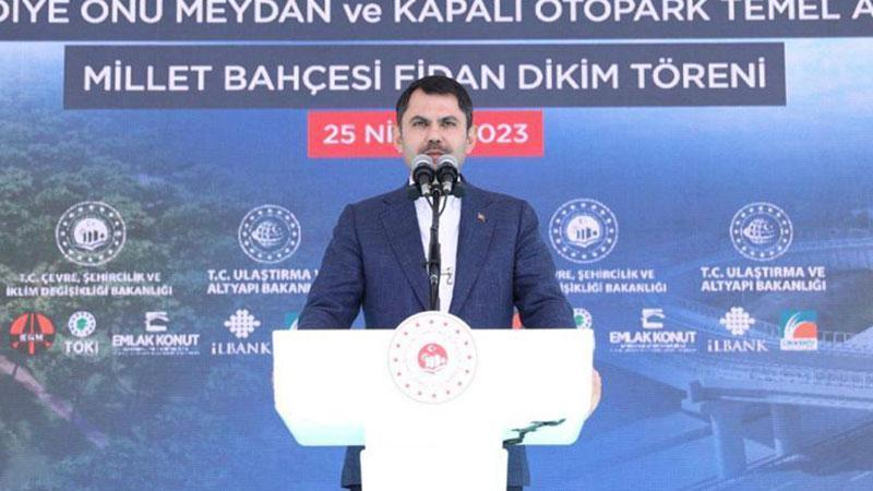 Bakan Kurum, “İstanbul’da, riskli tek bir yapı kalmasın, 16 milyon kardeşimiz bir an önce yeni güvenli yuvalara kavuşsun dedik ve 1.5 milyon konutluk Büyük İstanbul Dönüşümünün ilk temellerini attık. İnşallah 1 buçuk milyon konutu dönüştürerek, 6 milyon İstanbullu kardeşimizi daha güvenli alanlara taşıyacağız. ‘Yarısı Bizden’ olsun, İstanbul’da kentsel dönüşüm hızlansın dedik ve devletimizin tüm imkânlarını sizler için seferber ettik. Kardeşlerimizi ne köhne yapılara teslim edeceğiz ne de köhneleşmiş zihniyetlerin, yöneticilerin insafına bırakmayacağız. İstanbul’un havasını soluyan evlatlarımızın yeşil ile içe içe bir hayatı olsun istedik ve bu güzel şehre tam 48 millet bahçesi kazandırma gayretinde olduk. Bugün 2 buçuk milyon metrekare büyüklüğünde 15 millet bahçemizi sizlerin hizmetine sunduk. Gelin, hep birlikte, bir taşını dahi dünyalara değişmeyeceğimiz bu kutlu şehri afetlere karşı dirençli hale getirelim. Yeşilini hep birlikte koruyalım, evlatlarımıza en güzel haliyle bırakalım. Yepyeni bir İstanbul’u, mavi İstanbul’u, yeşil İstanbul’u hep birlikte kuralım. Herkesin İstanbul’unu el birliğiyle inşa edelim” ifadelerini kullandı.
