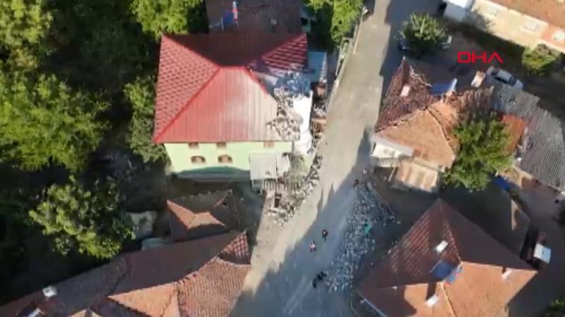 Balıkesir Sındırgı'daki depremin ardından Kızılgül mahallesi havadan görüntülendi