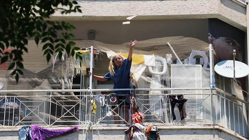Apartmanda Sevilay T. yüzünden can güvenliğinin kalmadığını söyleyen yönetici Suat Okyay da, "Sürekli tehdit hakaret ediyor. Bizim ve arabaların üzerine çöp atıyor. Şimdi eve taş toplamaya başladı. Psikolojik bir sorun. Sürekli bu stresi yaşıyoruz" diye konuştu.