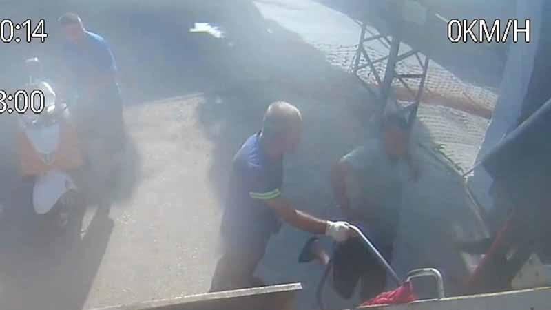 Adana'da apartmanın 2’nci katından sokağa çöp atan Y.Ö. ile oğlu S.Ö.’nün, kendilerine tepki gösteren belediye temizlik işçisi Ulaş A.'yı darbettikleri anların araç kamerasına yansıyan görüntüleri ortaya çıktı. Görüntülerde, Y.Ö. ile oğlu S.Ö.'nün motosikletle çöp aracının arkasına yaklaşmaları, Ulaş A., ile tartışmaları ve onu darp anları yer aldı. (DHA)