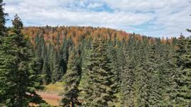 02:51Kasım yağışları, kuruyan Ulaş Gölü'ne 'ilaç' olduBartın'ın Ulus ilçe merkezine 33 kilometre uzaklıkta 1800 rakıma ulaşan, 20 bin hektarlık alanı kaplayan Gezen, Fındıcak, Kokurdan, Büyükdüz, Tekir, Öküzovası, Sarıçiçek, Ardıç ve Katırovası yaylalarında sonbaharın gelişiyle güzel görüntüler oluşmaya başladı. Ağaçlar, sarı ve kahverenginin tonlarının hakim olduğu renklere büründü. Gezen Yaylası'na geçen yıl Orman Genel Müdürlüğü tarafından yapılan Gezen Gölü'nün manzarası da doğa tutkunlarının ilgisini çekti. Yaylalar dronla görüntülendi. (DHA)
