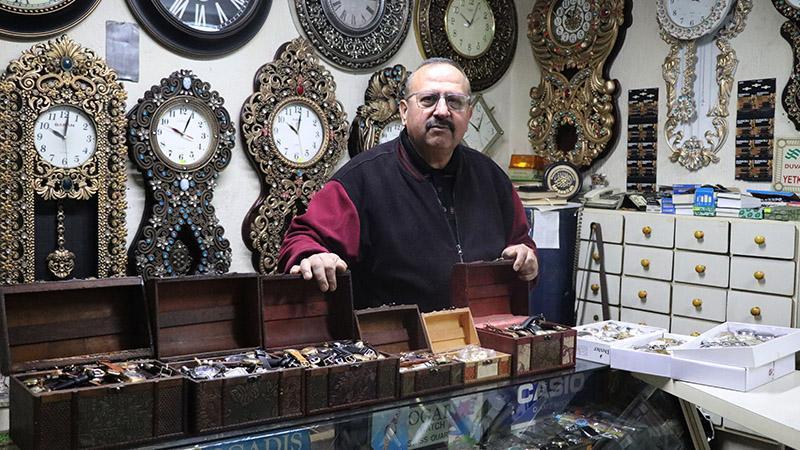 06:54İnşaat ustası babasının yaptığı eski Edirne evlerini, rölyefle buluşturduKayseri’de yaşayan evli ve 2 çocuk babası Ahmet Rıhtım, 13 yaşındayken babasının yanında çırak olarak saatçiliğe başladı. Geçen süreçte mesleği babasından teslim alan Rıhtım, saat satışı ve bozuk saatlerin tamirini yapıyor. Mesleğini 50 yıldır sürdüren Rıhtım, 40 yıldan bu yana beğendiği saatleri satmayıp 500 parçalık koleksiyon oluşturdu. En eskisinin 1850 senesinden kalma İsviçre yapımı saat olan koleksiyonda 100 farklı markadan saat bulunuyor. Yaptığı koleksiyonu anlatan Ahmet Rıhtım, "Koleksiyon yapmaya 1985’te hoşuma giden saatleri ayırarak başladım. Beğendiğim saatleri satmayıp kendime ayırdım. Şunu satma, bunu satma derken 500 saate ulaştık. Koleksiyondaki en eski parça 1850 yılına ait İsviçre yapımı bir saat. Saat koleksiyonumda 100 çeşit marka var. 1985’te başladım. 40 senedir biriktiriyorum. Saatçiliğe babamın yanında çırak olarak başladım. 50 yıllık saatçiyim. Koleksiyonumda 1850’den 1950’ye kadar saat bulunuyor" diye konuştu.