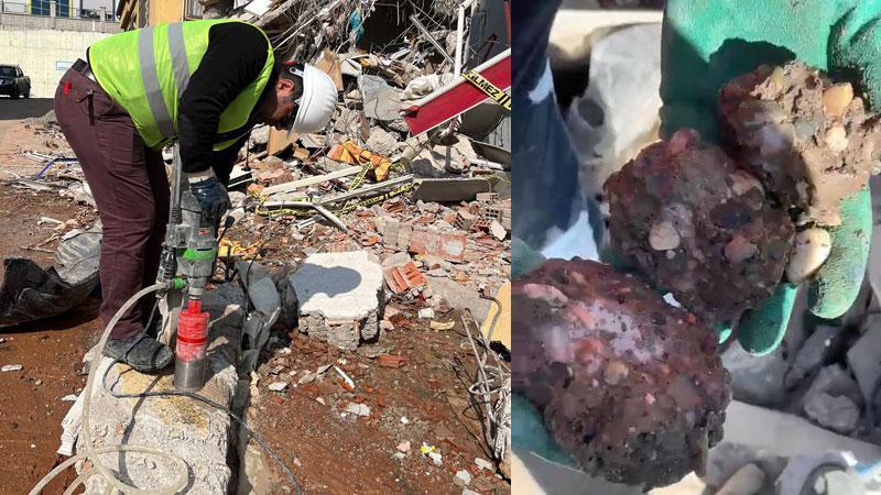 Poyraz, beton kalitesi nedeniyle numune toplama ve delil alma aşamalarında çok zorlandıklarını söyleyerek, "Dere malzemesi, tuvenan malzeme veya denizden mavnalarla çekilmiş, içerisinde organik malzemelerin çok fazla bulunduğu malzemelerle üretilmiş betonlar var. Adalet Bakanlığı bünyesinde delil numuneleri alırken, daha karot numunesini almadan dağılan, parçalanan, elle ufalanan betonlar izledik biz burada. Dolayısıyla bu nitelikteki bir betonun, bu tür yapıları ayakta tutması bile bırakın depremi, kendi halinde bile ayakta durması bizim için mucize gibi geliyor. Bu deprem belki bir sebebi oldu. Tüm ülkemizde herkes yapı niteliğinin, mühendisliğinin, donatının, işçiliğin ve betonun ne kadar önemli olduğunu hepimiz birlikte izledik" ifadelerini kullandı.