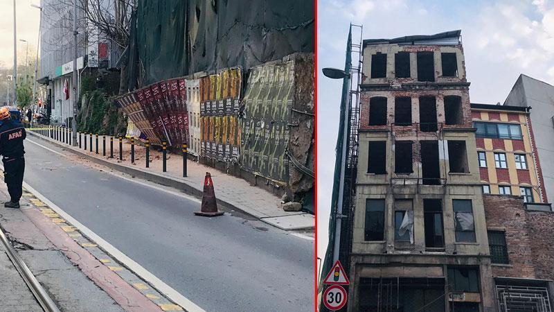 Beyoğlu'nda 5 katlı binada çökme riskine karşı yol, araç ve tramvay trafiğine kapatıldı