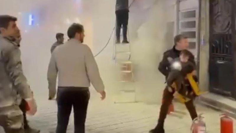 00:15Beyazıt Öztürk ‘Beyaz’la Joker’ ile Kanal D ekranlarındaYangın, saat 22.30 sıralarında Beyoğlu İstiklal Caddesi’nde bulunan bir büfede henüz bilinmeyen bir sebeple çıktı. Dumanları gören çevredekilerin ihbarı üzerine adrese polis, itfaiye ve sağlık ekipleri sevk edildi. Yangın itfaiye ekipleri tarafından söndürüldü. Yangın sırasında binada dumanların içinde mahsur kalan bir çocuk ise ekiplerin müdahalesi ile çıkarıldı. Sağlık ekipleri tarafından ambulansta sağlık kontrolünden geçirilen çocuğun sağlık durumunun iyi olduğu öğrenildi. Polis ekipleri yangınla ilgili inceleme başlattı.