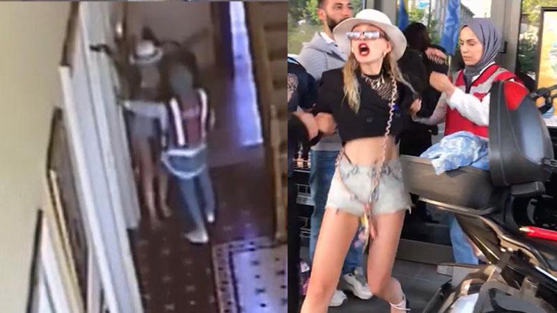 Polis aracına binmemek için uzun süre direnen kadının polise hakaret edip zorluk çıkardığı o anlar ise cep telefonu ile görüntülendi. Görüntülerde, polis aracına binmemek için direnen kadının polise zorluk çıkarması görülüyor. Güçlükle polis aracına bindirilen Melike D., bu sefer de polis merkezinde kendini yere atarak hakaretlerine devam etti. Kadın polisin ise saçını çekerek yere düşürdü.