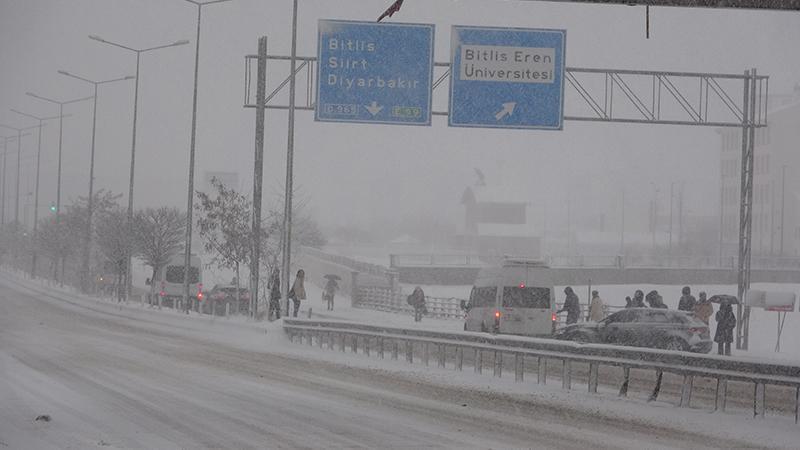 06:02Esenyurt'ta hafriyat kamyonunun çarptığı motokurye öldü; kaza kameradaMeteorolojinin uyarısı sonrası Bitlis'te dün gece saatleri itibarıyla kar yağışı etkili oldu. Kar kalınlığı kent merkezinde 5, yüksek kesimlerde ise 15 santimetreye ulaşırken, İl Özel İdaresine bağlı karla mücadele ekipleri kapanan 111 köy ve mezra yolunun açılması için çalışma başlattı. İl Özel İdaresi Yol ve Ulaşım Hizmetleri Şube Müdürü Ümit Kurtkan, kapanan yerleşim yeri yollarının ulaşıma açılması için 75 iş makinesi ve 80 personelle çalışma yürüttüklerini söyledi. Kar yağışı sonrası Karayolları ve belediye ekipleri de ana ve ara caddelerde kar temizleme çalışması başlattı.