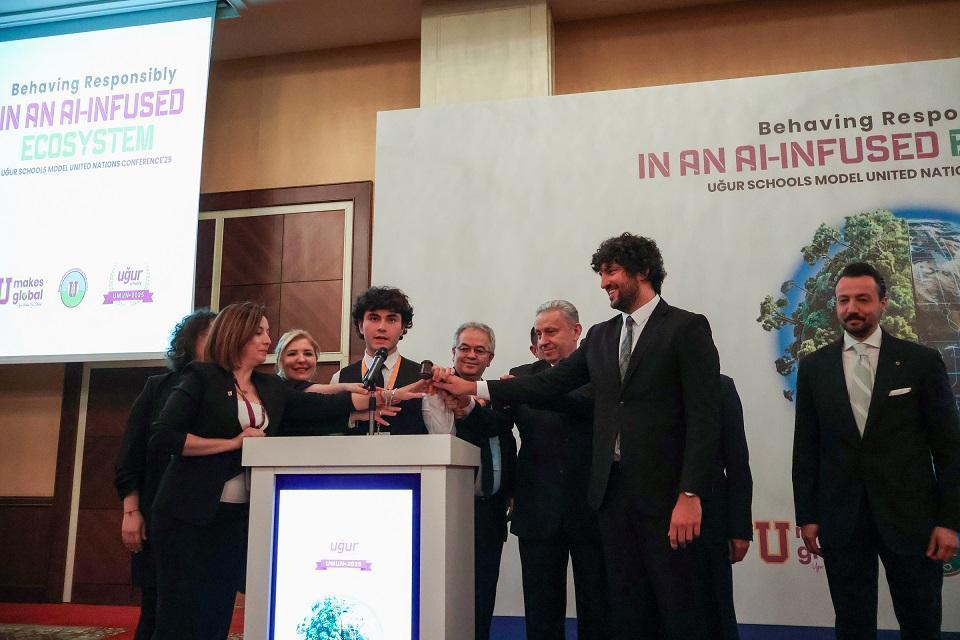 Uğur Okulları’nın, beş yıldır düzenlediği Model Birleşmiş Milletler Konferansı kapsamında bu yıl ilk kez yapay zeka temalı bir etkinliğe imza attığını belirten Bahçeşehir Üniversitesi Öğretim Üyesi Dr. Duygu Çakır ise “Bu yılki konferansta, yapay zekanın yalnızca etkili ya da verimli kullanımı değil, aynı zamanda sorumlu kullanımı üzerine odaklanıldı. Bu yönüyle etkinlik, alanında bir ilki gerçekleştirdi. Yapay zeka sistemleri tıpkı insanlar gibi ‘besleniyor’. Soğutulmak için suya, çalışmak için enerjiye ihtiyaç duyuyor. Ancak dünyadaki enerji kaynakları sınırlı ve yapay zekayı destekleyecek enerji hızla tükeniyor. İşte bu noktada, enerji tüketimini gözeterek teknolojiyi nasıl daha sorumlu kullanabileceğimiz, konferansta öğrenciler tarafından ele alındı. Etik kullanım, ön yargıların ve sistematik yanlılıkların önlenmesi, şirketler ve hükümetler için iç denetim ve kuralların geliştirilmesi gibi kritik başlıklar tartışmaya açıldı. Katılımcılar, yapay zekanın insanlar üzerindeki etkilerini değerlendirirken, bu teknolojinin yasal ve ahlaki sınırlarının nasıl çizilmesi gerektiği üzerine fikir alışverişinde bulundu” diye konuştu.