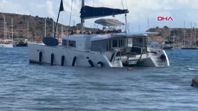Muğla'nın Bodrum ilçesinde etkili olan rüzgar ile birlikte katamaran tipi yelkenli tekne de Gümbet Sahili'nde kayalıklara oturdu. Tekneyi kurtarmak için çalışma yapılacağı belirtildi.