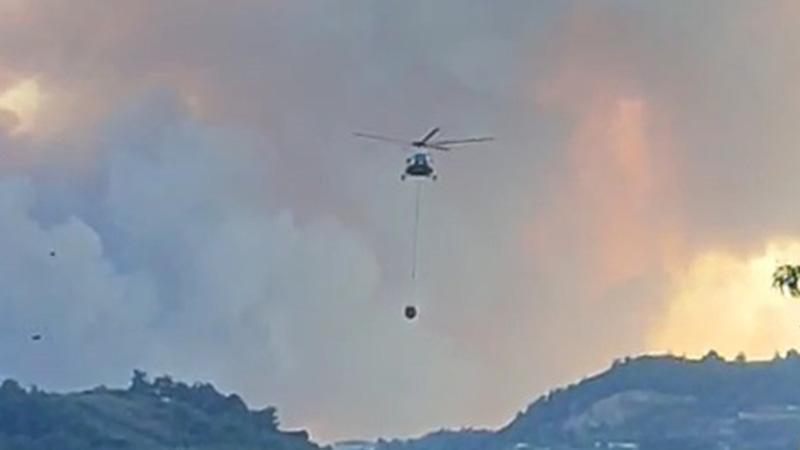 yangınına Gemlik sahilinde denizden su alan 2 helikopterle müdahaleye başlandı.