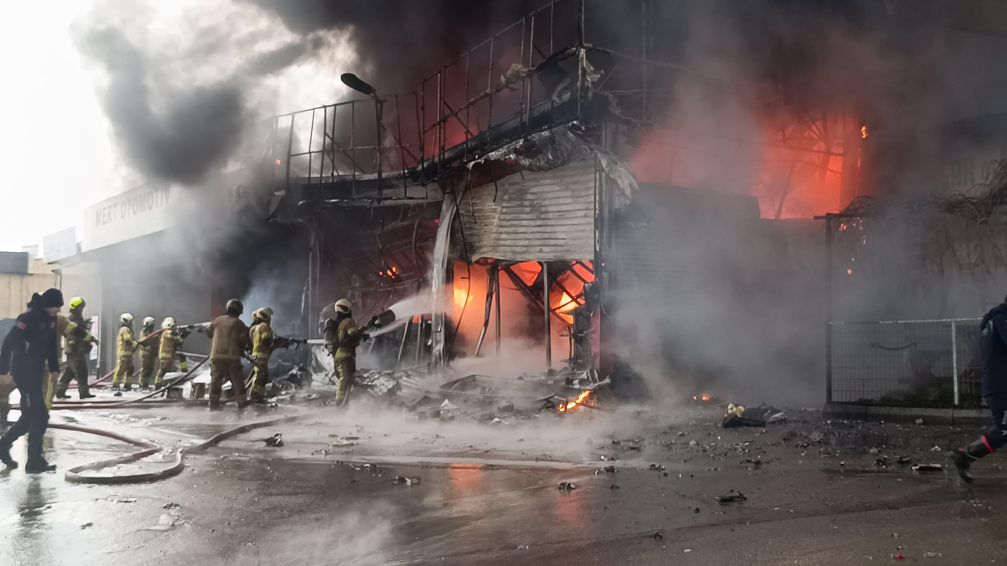 Yıldırım ilçesi Ankara Yolu Caddesi Oto Sanayi Sitesi (OTASANSİT) C 22'nci Sokak'ta bulunan otomotiv yağ bayisinde, saat 08.30 sıralarında çıktı. İhbarla olay yerine çok sayıda itfaiye, polis ve sağlık ekibi sevk edildi. Zaman zaman patlamaların yaşandığı yangına, itfaiye ekiplerinin müdahalesi sürüyor. (DHA)