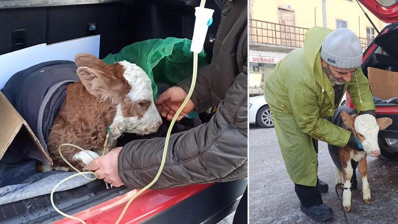 Posof’a bağlı Türkgözü köyünde yaşayan Savaş Atalay, 5 günlük buzağısı annesini emmeyi kesince otomobilinin bagajına koyarak ilçe merkezindeki veterinere götürdü. Veterinerin otomobilin bagajında müdahale ettiği buzağıya serum takıldı. Serum tedavisinin ardından buzağı ayağa kalktı.Tedavi sonrası Savaş Atalay, “Buzağı hastalanınca mecburen arabayla veterinere getirdim. Ne sıkıntısı olduğunu tam olarak bilmiyoruz. Yemeden içmeden kesilmişti. Veteriner serum taktı, iyi gelmiş gibi görünüyor. Geçen yaz bölgemizde etkili olan şap hastalığının kalıntıları nedeniyle ya ineklerin memeleri kör oldu ya da buzağılar hastalıklı doğuyor. İnşallah buzağımız iyileşir” dedi.