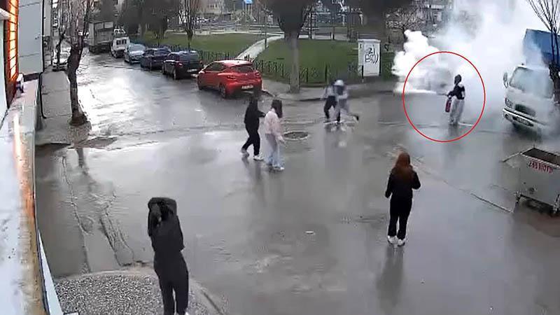03:18‘Trabzon Film Festivali’nde 38 film yarışacak, ‘Altın Taka’ ödülleri verilecekOlay, 2 Nisan saat 19.00 sıralarında Odunpazarı ilçesi Emek Mahallesi’nde meydana geldi. Sabah saatlerinde Merve Camii’ne giren bir grup çocuk, içerideki yangın tüpünü alarak uzaklaştı. Caminin karşı sokağındaki parka gelen arkadaş grubu, yangın tüpünü birbirinin üzerine ve etrafa sıkmaya başladı. Tüpten çıkan beyaz duman tüm sokağı kaplarken, yoğun karbondioksit gazından etkilenen çocuklardan biri kaçmak isterken fenalaşarak bayıldı. Elinde yangın tüpü olan çocuk ise yerde baygın halde yatan arkadaşına gaz sıkmaya devam etti. O anlar, çevredeki bir apartmanın güvenlik kamerasına yansıdı. Boşalan yangın tüpünü parka atan grup, uzaklaştı. Cami görevlilerinin şikayetçi olması üzerine polis olaya ilişkin inceleme başlattı.