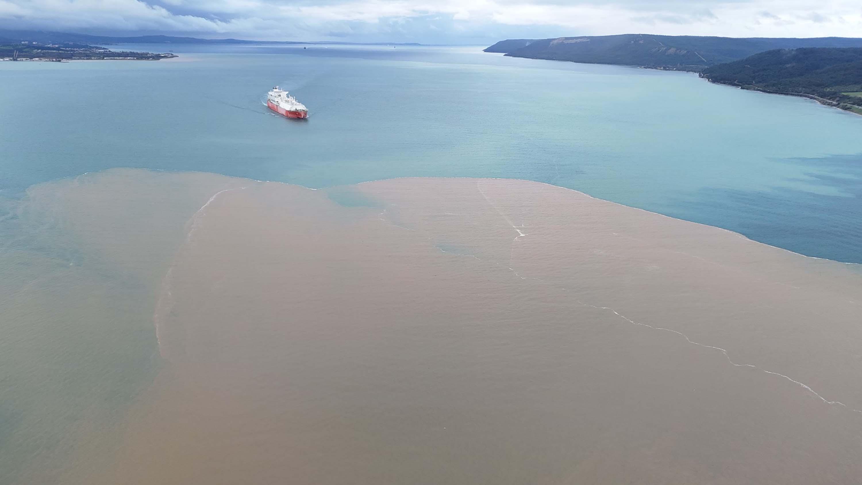 ’nda, etkili olan sağanakta Sarıçay'ın taşıdığı alüvyon nedeniyle denizin bir bölümünün