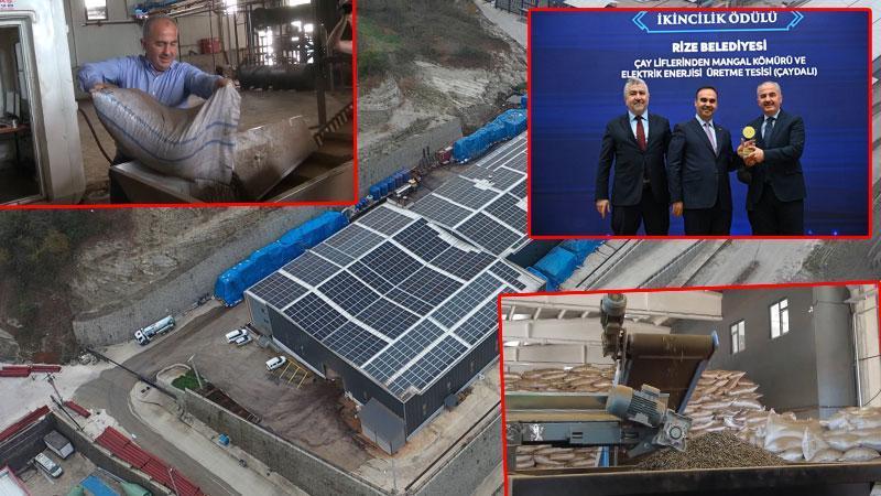 Doğu Karadeniz’de 830 bin dekar alanda yapılan çay tarımında oluşan çay çöpü liflerinin geri dönüştürülmesi amacıyla, Rize Belediyesi tarafından Kalkandere ilçesindeki organize sanayi bölgesinde 12 dönümlük alanda tesis kuruldu. Tesiste, çöp lifleri karbonla preslenerek yılda 2 bin ton mangal kömürü elde edilirken, bu sırada çıkan metan gazıyla saatte 0,8 megavatlık elektrik enerjisi üretiliyor. Yılda 30 milyon TL gelir elde edilen tesis, çay lifinin işlenmesi sırasında ortaya çıkan ısının yanı sıra 4 bin 200 metrekarelik çatısına yerleştirilen güneş panellerinden de elektrik üretebiliyor. Ar-Ge çalışmaları sonucunda tarım ve evcil hayvanlar için çeşitli yan ürünler oluşturulmasına yönelik çalışmaların sürdüğü tesiste üretilen mangal kömürleri Almanya ve İngiltere başta olmak üzere birçok Avrupa ülkelerine ihraç ediliyor. Çay çöpünden katma değer üretip enerjisini kendi kendine sağlayan tesis, Sanayi ve Teknoloji Bakanlığı tarafından düzenlenen Verimlilik Proje Ödülleri kapsamındaki 'Sürdürülebilir Üretim Yöntemlerinde Verimlilik' kategorisinde Türkiye 2'nciliği ödüle layık görüldü. Ankara'da düzenlenen törenle, Sanayi ve Teknoloji Bakanı Mehmet Fatih Kacır tarafından Rize Belediye Başkanı Rahmi Metin'e ödül takdim edildi.