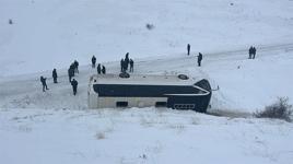 Sivas'ta şarampole devrilen otobüsün kendisi de kazada yaralanan şoförü Ensar Pehlivan, cenazeden döndükleri sırada, kar yağışı nedeniyle yolun kaygan olduğunu belirterek, "Araba yokuştan çıkarken durdu. Daha sonra geri geri kaymaya başladı" dedi.
