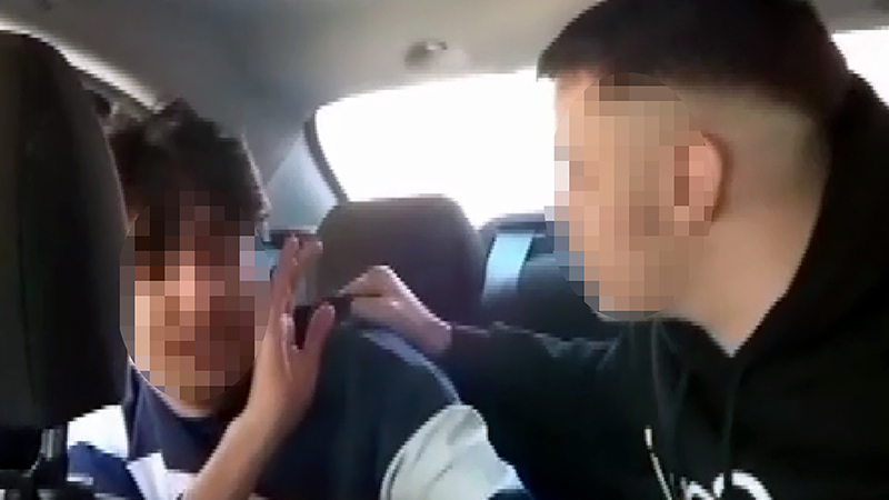 Şüpheliler, R.G. ile birlikte boş bir araziye gitti. Otomobili durduran şüphelilerden arka koltuktaki H.A.D., R.G.'yi darbetti. Ön koltuktaki Miraç Taylan A. da bu anları cep telefonu kamerasıyla kaydetti. Görüntülerde; R.G.'nin ağlayarak, özür dilediği anlar yer aldı. H.A.D., tokat ve yumruklarla darbettiği R.G.'nin otomobilden inmesine izin verdi. Araçtan inen R.G., koşarak bölgeden ayrıldı.