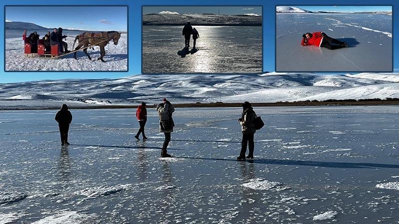 Çıldır Gölü'nün yüzeyinde donmanın başlamasının ardından atlı kızaklar ve kar motorları hazır hale getirildi. Buz kalınlığının henüz istenilen düzeyde olmaması sebebiyle bölgeye gelen misafirler göl kenarında tur attırılıyor.