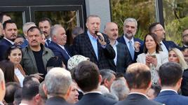 ErdoÄŸan, ziyaret sonrası belediye önünde toplananlara hitap etti. ErdoÄŸan, "Yola çıkarken bizim eÄŸitim, saÄŸlık, adalet, emniyet, enerji, ulaşım, tarım, bütün bu alanlarda çok büyük sözümüz vardı ve hamdolsun bu sözlerimizi büyük ölçüde yerine getirdik. SaÄŸlıkta, hastanelerimizde attığımız adımlarla, eÄŸitimde attığımız adımlarla Türkiye'de 76 üniversitemiz varken ÅŸu anda 207 üniversitemiz var. Üniversitemizin olmadığı ilimiz yok. 81 vilayetin tamamında artık üniversitemiz var. Yani benim IÄŸdır'daki kardeÅŸim, Hakkari'deki kardeÅŸim, MuÅŸ'taki kardeÅŸim, çocuÄŸunu üniversiteye göndermek için İstanbul'a, Ankara'ya deÄŸil. Artık MuÅŸ'ta üniversite var. IÄŸdır'da üniversite var. Artık oradaki üniversitelerde çocuklarını okutma ÅŸansı var" diye konuÅŸtu.