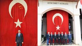 Valilik giriş kapısına asılan bayrağın çok özel olduğunu belirten Vali Hulusi Şahin, şu bilgileri verdi: "100'üncü yıl kutlamaları çerçevesinde 2023 yılının 29 Ekim arifesinde arayışlarımız vardı, '100'üncü yılı hakkıyla nasıl idrak ederiz' diye. O süreç içerisinde böyle bir bayrağın olduğu söylendi bize. Bir koleksiyonerin koleksiyonunda olduğu, Cumhuriyet ile yaşıt bir bayrak olduğu söylendi. Koleksiyonerimizi bulduk. Bahadır Kalaycı adlı, gerçekten çok değerli bir dostumuz. Kendi özel koleksiyonundan bunu çıkardı. El yapımı bir bayrak tamamen ve yaşı da 1920'lere tekabül ediyor. Cumhuriyet ile yaşıt, el yapımı özel bir bayrak. Biz de Bahadır beyin yüksek müsaadesiyle 100'üncü yılda ilk defa astık. Şimdi her yıl asıyoruz ve Cumhuriyet'e tanık olan bu bayrağın önünde, biz de Cumhuriyet kutlama resepsiyonumuzu düzenliyoruz. Bir tarihe, Cumhuriyet'in serüvenine tanıklık eden bir bayrağın, şanlı bayrağımızın önündeyiz."