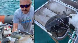 00:5633 ilde DEAŞ operasyonu: 51 tutuklamaKaş ilçesinde tatilcileri tura çıkaran Mustafa Kaya Yağcıoğlu, geçen günlerde misafirlerini gezdirmek için İnönü Koyu'na teknesini demirledi. Denizdeki plastik atıkları gören Yağcıoğlu, çöpleri toplamaya başladı. Bu sırada bir çuvalın hareket ederek denizin dibine doğru gittiğini gören Yağcıoğlu, durumu anlamak için suya daldı. Yağcıoğlu, çuvalla birlikte hareket eden canlıyı yakaladı. Yağcıoğlu, çuvalı açtığında nesli tehlike altında olan caretta caretta ile karşılaştı. Kaplumbağayı tekneye çıkaran Yağcıoğlu, uzun uğraşlar sonucu hayvanı dolandığı atıktan kurtardı, ardından da onu yeniden denize bıraktı. Caretta caretta hızla uzaklaşırken, o anlar, cep telefonu kamerasıyla görüntülendi.