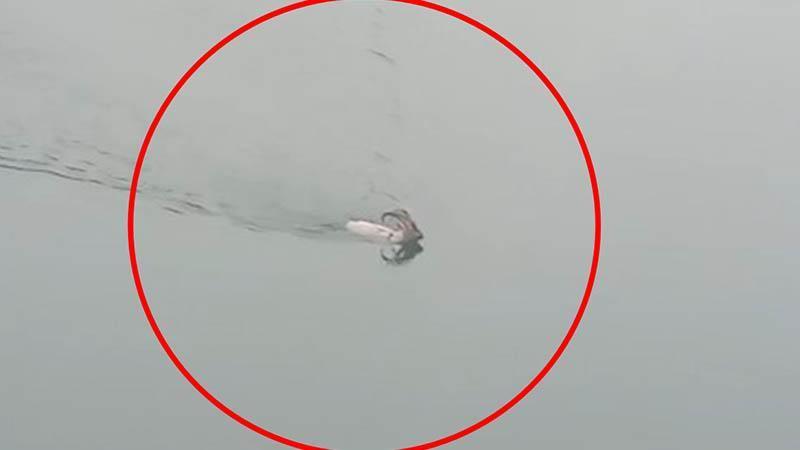 Dağ keçisi baraj gölünü yüzerek geçti; o anlar kamerada