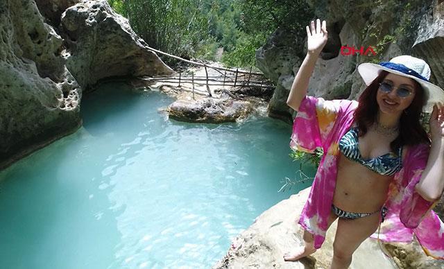 Antalya'nın Serik ilçesinde, denizden 400 metre yükseklikteki Yukarı Uçansu ve Aşağı Uçansu şelaleleri ile zirvesindeki 'kral havuzu', koronavirüs önlemlerinin hafifletilmesinin ardından yerli turistlerin tercihi oldu.