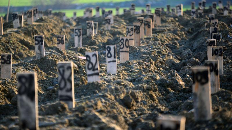 02:51Kasım yağışları, kuruyan Ulaş Gölü'ne 'ilaç' olduPazarcık ve Elbistan merkezli 2 depremde 100 saat geride kalırken, Hatay'da binlerce kişi yaşamını yitirdi. Antakya ilçesinde AFAD koordinasyounda belirlenen alana defin işlemleri başladı. İş makineleri tarafından düzenlenen alanda cenaze teslim, cenaze yıkama ve mescit alanları oluşturuldu. Hastanede otopsi işlemi tamamlanan cenazeler, nakil araçları ile 'deprem mezarlığı' alanına getirilip dini vecibeler yerine gitirilerek defin yapılıyor.
