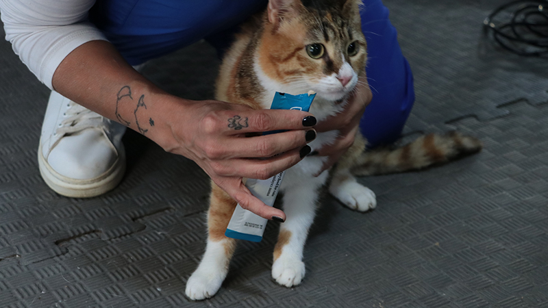 Veteriner Teknikeri ve Fizyoterapisti Yağmur Denli, şu anda 4 yaşında olan Defne'nin, depremde geçirdiği travma nedeniyle yürürken zaman zaman denge kaybı yaşamaya devam ettiğini söyleyerek, "Depremden sonra birçok can o bölgeden tedavi ve sahiplendirilmek için bize getirildi. Getirilen hayvanları sahiplendirdik; fakat Defne, aldığı darbe sonrası denge kaybı yaşıyor. Tedavisi tamamlansa da yaşadığı bu sorun yüzünden yuva bulamadık. Aşılarını tamamladık ve kısırlaştırdık. Kafatasına aldığı darbeden dolayı yürürken denge kaybı yaşayabiliyor. Onu herhangi bir yere bırakma şansımız yok. Yuva bulana kadar bizimle kalmaya devam edecek. Dilerim ki ömürlük bir yuvası olur" dedi.