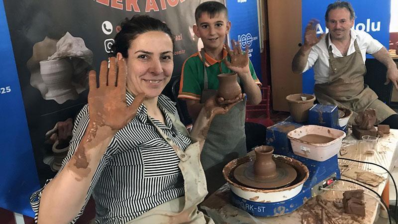 Çömlek sanatçısı usta öğretici Nurettin Çakmak da eşiyle birlikte okullarda çocuklarla çömlek sanatını buluşturmaya çalıştıklarını ifade ederek, “Ben ve eşim, sene başından bu yana proje kapsamında okullara gidiyoruz. İkimiz usta öğreticiyiz, daha çok kırsal bölgelerde çocuklara ulaşmaya çalışıyoruz. Birebir torna başında çömlek deneyimi yaşıyorlar. Çömlek, maalesef şu an unutulmaya yüz tutmuş sanatlardan bir tanesi ve insanoğluyla var olmuş bir el sanatıdır. Ancak şu an maalesef sayı olarak çok azaldı ve biz ikili olarak okullara gidip çömlek sanatını, seramik sanatını çocuklarla buluşturmaya çalışıyoruz” diye konuştu.
