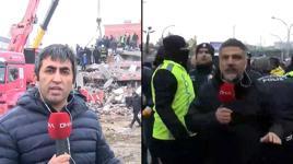 5 bölgede ve birçok ilimizde yıkım yaratan depremle ilgili canlı yayın yapan DHA ekipleri de depreme yakalandı. Kahramanmaraş Elbistan'da meydana gelen 7.6'lık yeni depremde DHA muhabiri Olcay Düzgün, o sırada yaşananları aktarmaya devam etti. DHA muhabiri Ali Leylak da Şanlıurfa'dan canlı yayın yaparken deprem yaşandı. O anlar kameralara böyle yansıdı.