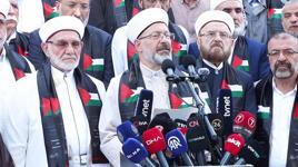 Diyanet İşleri Başkanı Ali Erbaş, “Tüm dünyanın gözü önünde Filistin’de bir millet yok ediliyor. Tüm tarih, kültür, medeniyet, vicdan, ahlak, hukuk yok ediliyor. Tüm insanlığın harim-i ismeti, ortak değerleri, onuru ve haysiyeti yok ediliyor. Bir terör şebekesi, bir haydut sürüsü, azgın ve sapkın bir çete vahşet üzerine vahşet uyguluyor. Bir enkaza, bir hapishaneye çevirdiği Gazze’yi şimdi tamamen işgal etmek üzere harekete geçiyor. Bu vahşeti durdurmak zorundayız. Zira Filistin davası bir iman meselesidir. Ahlak ve vicdan meselesidir. Zira Filistin’e huzur gelmeden yeryüzüne huzur gelmeyecek. Filistin coğrafyasını, bir kene gibi yapışan, bir mikrop gibi bulaşan zalimlerden kurtarmak zorundayız. Bunun için tüm Müslümanlar, tüm Müslüman devletler, tüm vicdan sahipleri bir araya gelerek zalimleri durduracak ciddi kararlar almak, yaptırımlar uygulamak zorundadır. Her zaman söylüyorum; işgalciler Müslüman dünyanın dağınıklığından, gafletinden cesaret alıyor. Zalimler korkaktır. Ama Müslümanlar güç birliği yapamadığı için kötülük yapmaya cesaret ediyorlar. Dünyanın her yerinde Filistin’i işgal eden terör şebekesine karşı küresel bir direniş büyüyor. İnanıyorum ki, en kısa sürede mazlumlar zafere ulaşacak, zalimler hak ettiği cezayı bulacaktır. Bugün de burada Gazze’nin, Kudüs’ün, Filistin’in özgürlüğü için bir organizasyon yapılıyor. Dünya Müslüman Âlimler Birliği ve İslam Âlimleri Vakfı’nın öncülüğünde bir hafta sürecek bir program başlıyor. Yapılacak çalışmanın hayırlara vesile olmasını niyaz ediyorum” dedi.