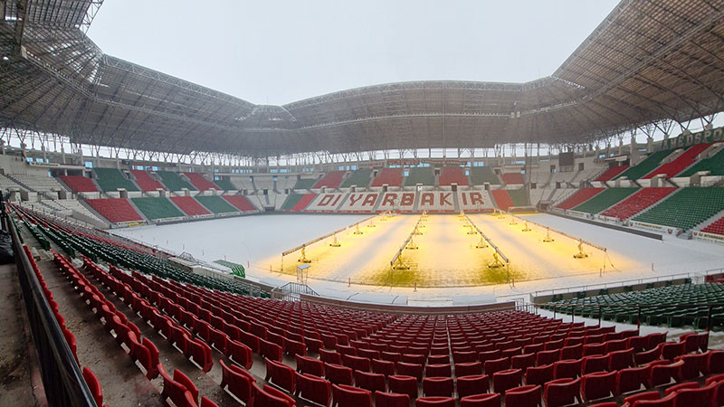 “Hava eksi 2 derece ve kar var. Bizim için önemli olan çimlerin köküdür. Şu anda alttan ısıtma olduğu için mümkün olduğu derece kökleri sıcak tutmaya çalışıyoruz. Üstten de yapay güneş ışıklarıyla destek veriliyor. Bu sadece kış için değil yaz için de aynı şekilde önlemler alınıyor. Yani önemli olan çimin kökü. Yanmaması ya da donarak ölmemesi gerekiyor. Aşağıda soğutma boruları olduğu için soğutarak koruyoruz. ‘Sun lighting’ dediğimiz yapay güneş ışınlarıyla da üstten karların erimesini sağlıyoruz. Stadyumdan çok memnunuz. Şehrimizin takımı Amedspor da çok memnun. Şehrimizden bir takımın da şampiyon çıkması için de çabalıyoruz. Hava eksi 2 derece olmasına rağmen zemini çimleri otomasyonlu sistemde 22 derece sıcaklıkta tutmaya çalışıyoruz. Yaz aylarında da aynı otomasyonla çimlerin yanmamasını sağlıyoruz” dedi. (DHA)