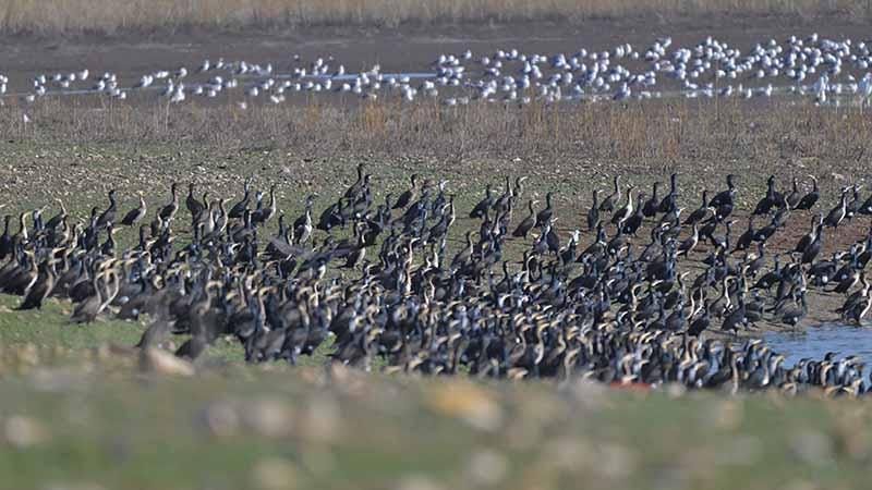 Diyarbakır'da Dicle Üniversitesi Yerleşkesi'ndeki Kabaklı Göleti'nde farklı türden binlerce kuş, bir arada beslenirken görüntülendi. Biyoçeşitlilik ve Çevre Koruma Uzmanı Prof. Dr. Ahmet Kılıç, "Karabatakların bu kadar yoğun halde bir arada çekildiği video ilk" dedi.
