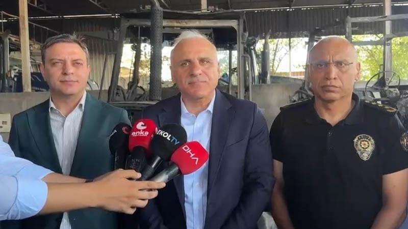 Diyarbakır Valisi Murat Zorluoğlu, İl Emniyet Müdürü Fatih Kaya ve Kayapınar Kaymakamı Ömer Bilgin ile yangının çıktığı Kayapınar ilçesindeki Traktörcüler Sitesi'ni ziyaret etti. Burada incelemelerde bulunan Vali Zorluoğlu, "Kayapınar ilçemizde şu anda içerisinde bulunduğumuz Traktörcüler Sitesi'nde, bu sabaha karşı bize saat 02.30'da bu bilgi geldi. Malum yangın hadisesi gerçekleşti. Bu yangınla neticesinde 3 tane iş yerinde toplam 19 tane traktörümüz kullanılamaz hale geldi. Ağır hasar, zarar gördü. Bir de binek araç bu yangından etkilendi. Tabii yangının çıkış sebebi vesaire ile ilgili henüz net bir şey söylemek için erken. Ama buraya geceden itibaren itfaiyemiz, hatta bizim İl Emniyet Müdürlüğümüzün TOMA’sı da müdahale etmek suretiyle, yangının başka taraflara da sıçraması engellenerek yangın söndürüldü. Neticesi itibarıyla konuyla ilgili adli süreç başlatıldı. Bütün boyutlarıyla mesele incelenecek. Ondan sonra da inşallah sonuç ilgileriyle ve gerekirse kamuoyuyla açıklanacak. Tabii sevindirici tarafı, burada herhangi bir ölüm ya da yaralanmanın olmamış olması. Mal yerine geliyor malum ama giden canlar yerine gelmiyor. O bakımdan inşallah bu bölgelerde de şehrimizin diğer yerlerinde de bu tür hadiselerin yaşanmaması için sıkı bir şekilde tedbirlerimizi alıyoruz. Biz de gecenin o saatlerinde konuyu takip ettik. İl Emniyet Müdürümüz de aynı şekilde. Allah şehrimizi de, insanlarımızı da daha beter hadiselerden muhafaza eylesin" dedi.