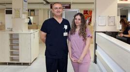 Doktor Zeliha Dağlıoğlu da ilk görev yerinin babasının çalıştığı hastane olmasından dolayı çok mutlu olduğunu ve kendisini şanslı hissettiğini ifade ederek, "Yaklaşık 2 aydır burada babamla beraber çalışıyoruz. Nöbetlerde denk geldiğim zamanlarda tabii ki hastaları sorabiliyorum. Beraber çalışmak gayet keyifli oluyor. Nöbetteyken evde olan babama zaman zaman danıştığım durumlar olabiliyor. Bana yardımcı oluyor" dedi.