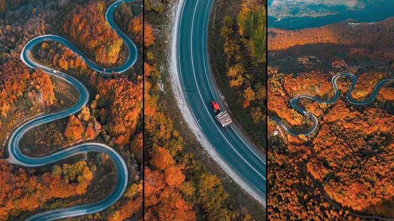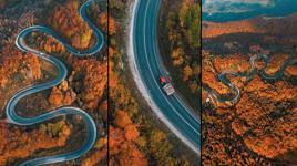 Bursa'nın İnegöl ilçesi ile Kütahya'nın Domaniç ilçelerini birbirine bağlayan 'kıvrımlı yollar', sonbahar renkleriyle sürücülere güzel manzara sunuyor. Çevresindeki ağaçların sarı ve yeşilin tonlarına büründüğü yol, dronla görüntülendi.